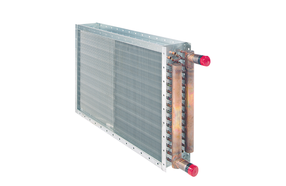 Les serpentins de refroidissement et chauffage par eau peuvent répondre aux exigences de n’importe quelle charge théorique. Les tubes de cuivre décalés entrent intimement et longtemps en contact avec l’air alors que des ailettes recourbées font onduler le flux d’air dans tout le serpentin, produisant des turbulences qui maximisent le transfert de chaleur et accroissent son efficacité.