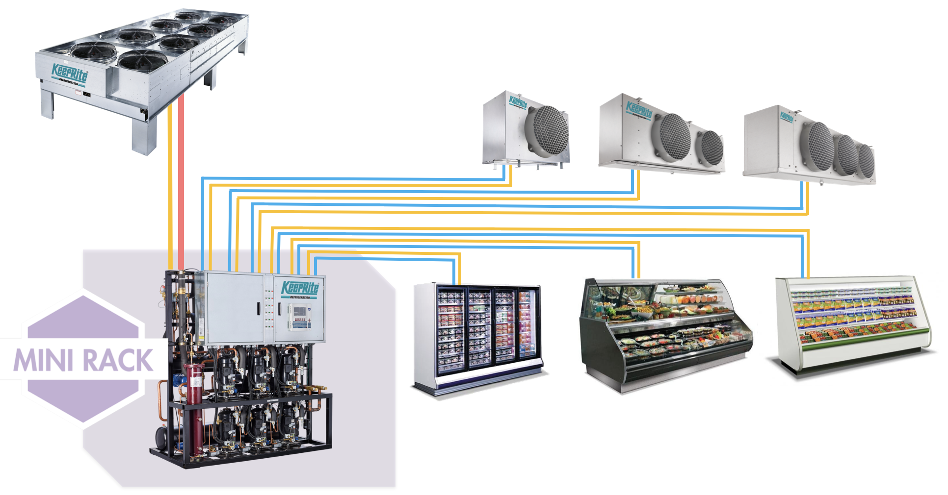 A Mini-Rack is an indoor Parallel Compressor System with a larger profile than the LINK to be able to house a receiver, branch circuits and other piping/electrical instruments.
